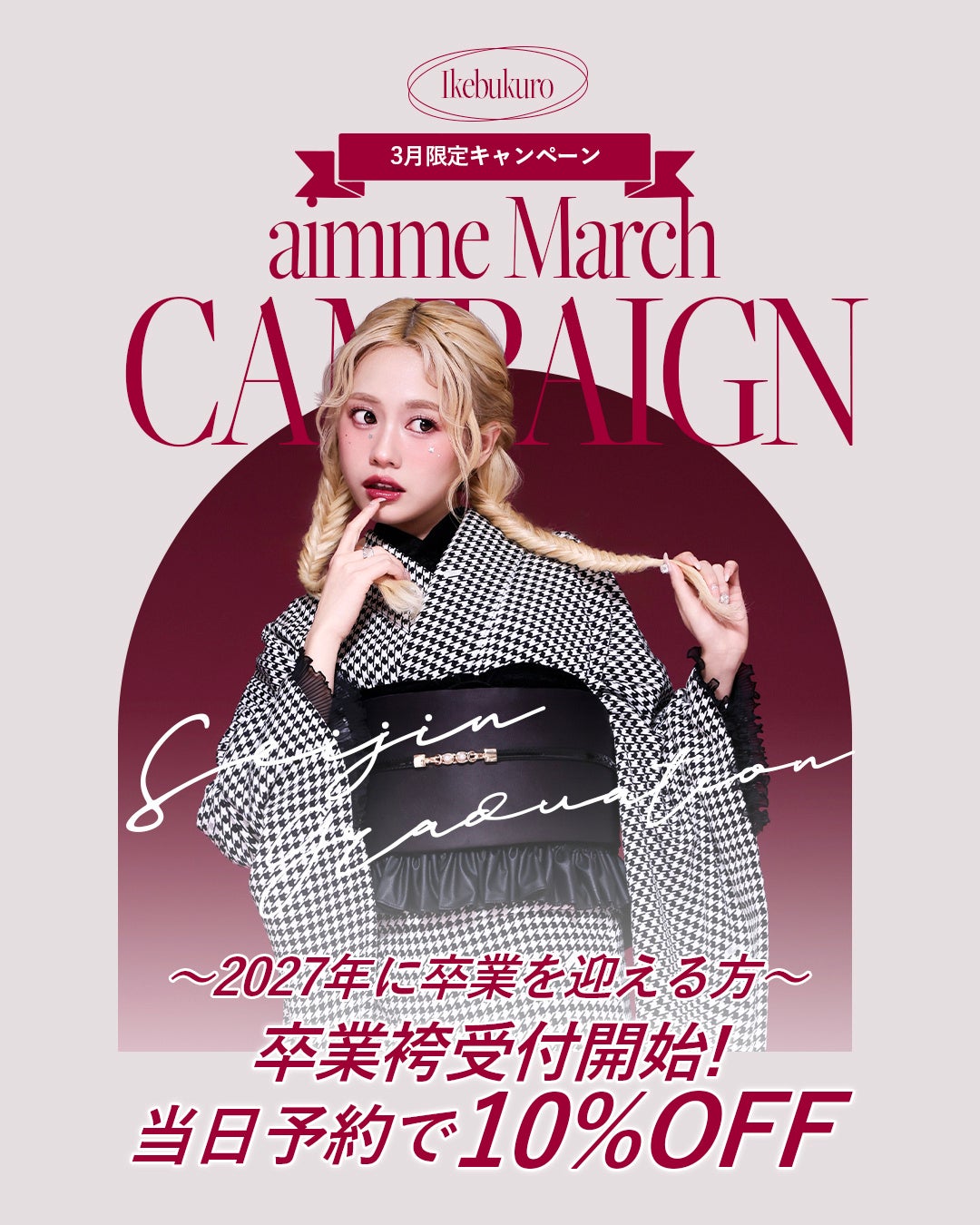 三景スタジオが運営する振袖&卒業袴レンタル専門店「aimmе東京池袋店」(東京都豊島区南池袋1丁目21−4 繁昌社南池袋ビル8階)は、2026年3月限定でキャンペーンを行い、3月中に契約した利用者に特別特典を付与します。配信日時は2026年3月9日17時14分です。