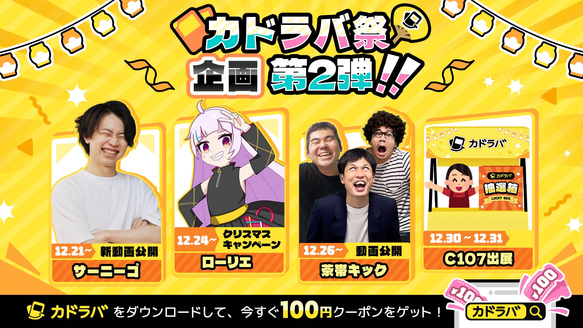 トレーディングカードのオールインワンアプリ「カドラバ」は、2025年12月30日・31日に東京ビッグサイトで開催される「コミックマーケット107」に企業ブースとして初めて出展し、ブース番号は1424です。会場ではアプリ体験者へのパック配布、ポケモンカードBOXなどが当たる無料抽選会、人気アイテムを100円で販売する「100円均一スピードセール」を実施します。スピードセールは数量限定で1時間ごとに新商品を追加し、会場外からもアプリ経由で参加できます。アプリ体験ではAI画像検索のデモや、希望者向けにデッキAI診断も行う予定です。運営元のトリシューラは11月中旬から大型コラボ企画「カドラバ祭」を展開しており、年末に向けて施策を強化します。コミケ出展を通じ、トレカファンの接点拡大とアプリ利用の拡大がどこまで進むかが注目されます。【イベント情報】
